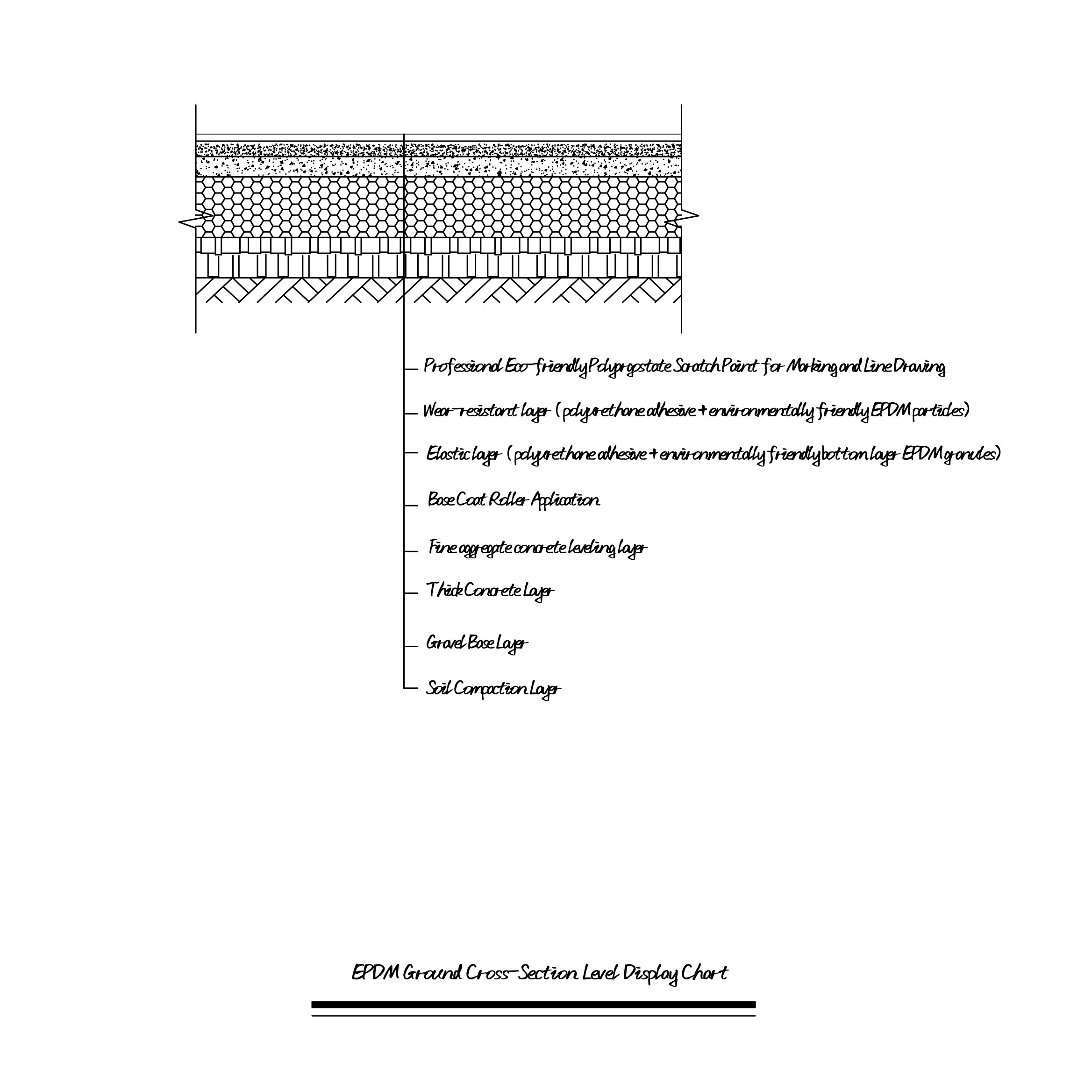 Top Layer: EPDM (Ethylene Propylene Diene Monomer) rubber or TPV Granule and aromatic or aliphatic polyurethane binder