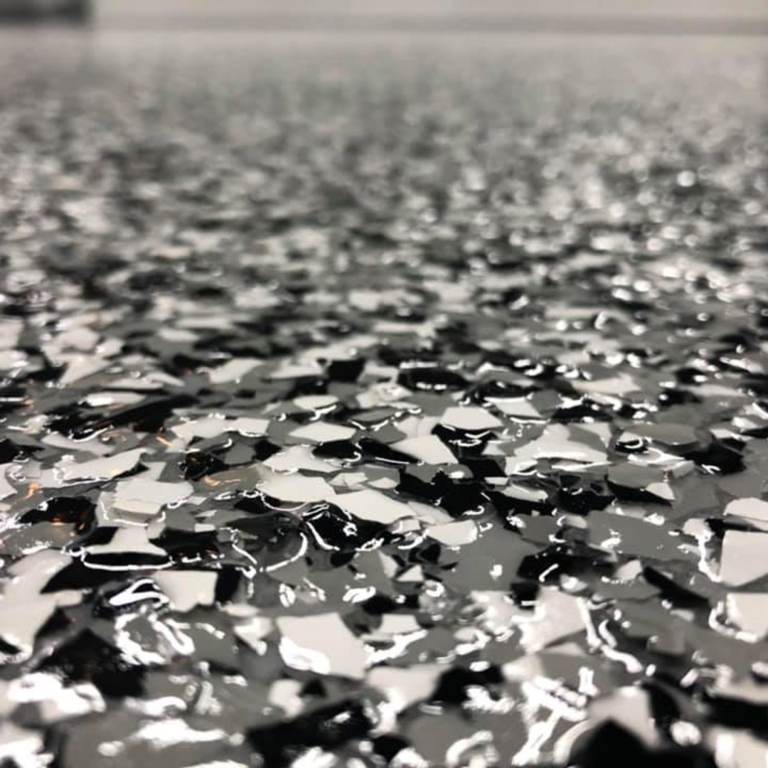 3. Brush the transparent polyaspartic (JS01Y) and cover the flakes.