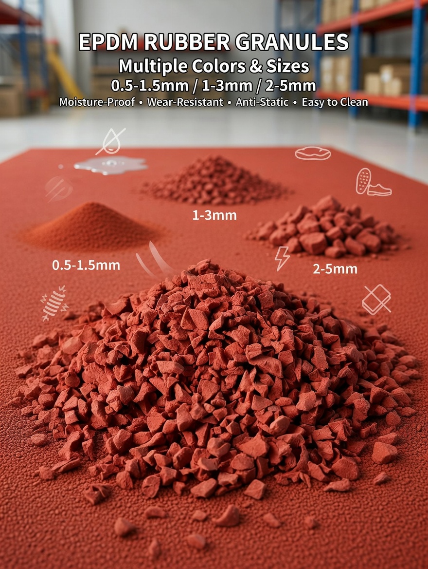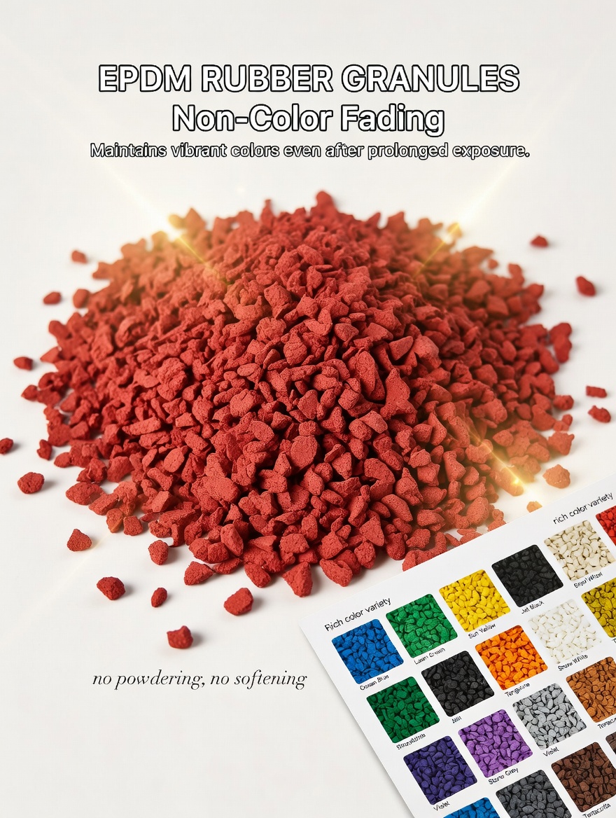 Baoli Technology (Ningguo) Co., Ltd. specializes in EPDM Rubber Granules for sports tracks, playgrounds, kindergarten flooring and outdoor sports surfaces. Our eco-friendly granules feature excellent heat resistance, UV resistance, anti-aging performance and color stability, ensuring long‑term bright color and no fading.